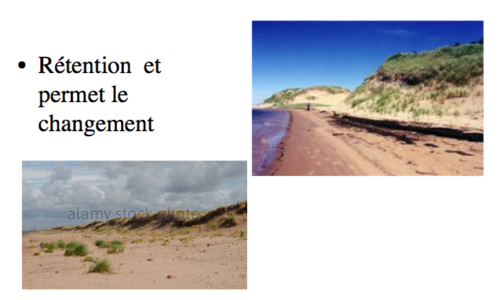 Ces photographies de la plage sur l’île de Tracadie au N.-B. représente parfaitement le concept du rhizome proposé par Deleuze et Guattari. Histoire cocasse : j’ai passé un mois sur cette île à écrire mon mémoire de maîtrise sur la pédagogie rhizomatique pour constater à la fin que cette île existait à cause du foin de mer. Celle-ci est une plante rhizomatique qui permettait la rétention du sable et aussi une modulation de territoire. ;-)